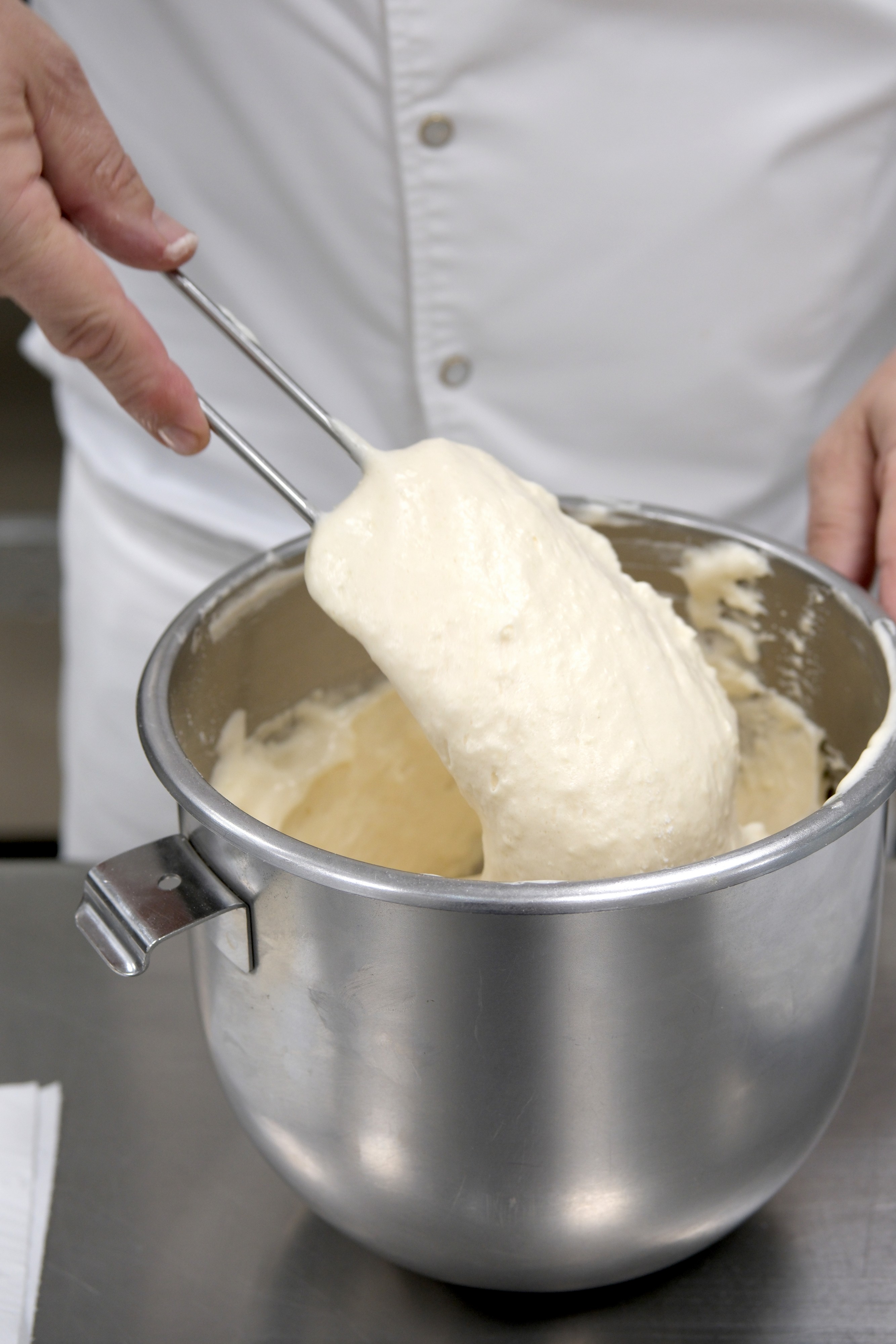 - Dans une bassine, mélanger tous les produits secs ensemble, puis ajouter les liquides en mélangeant constamment jusqu'à l'obtention d'une pâte homogène