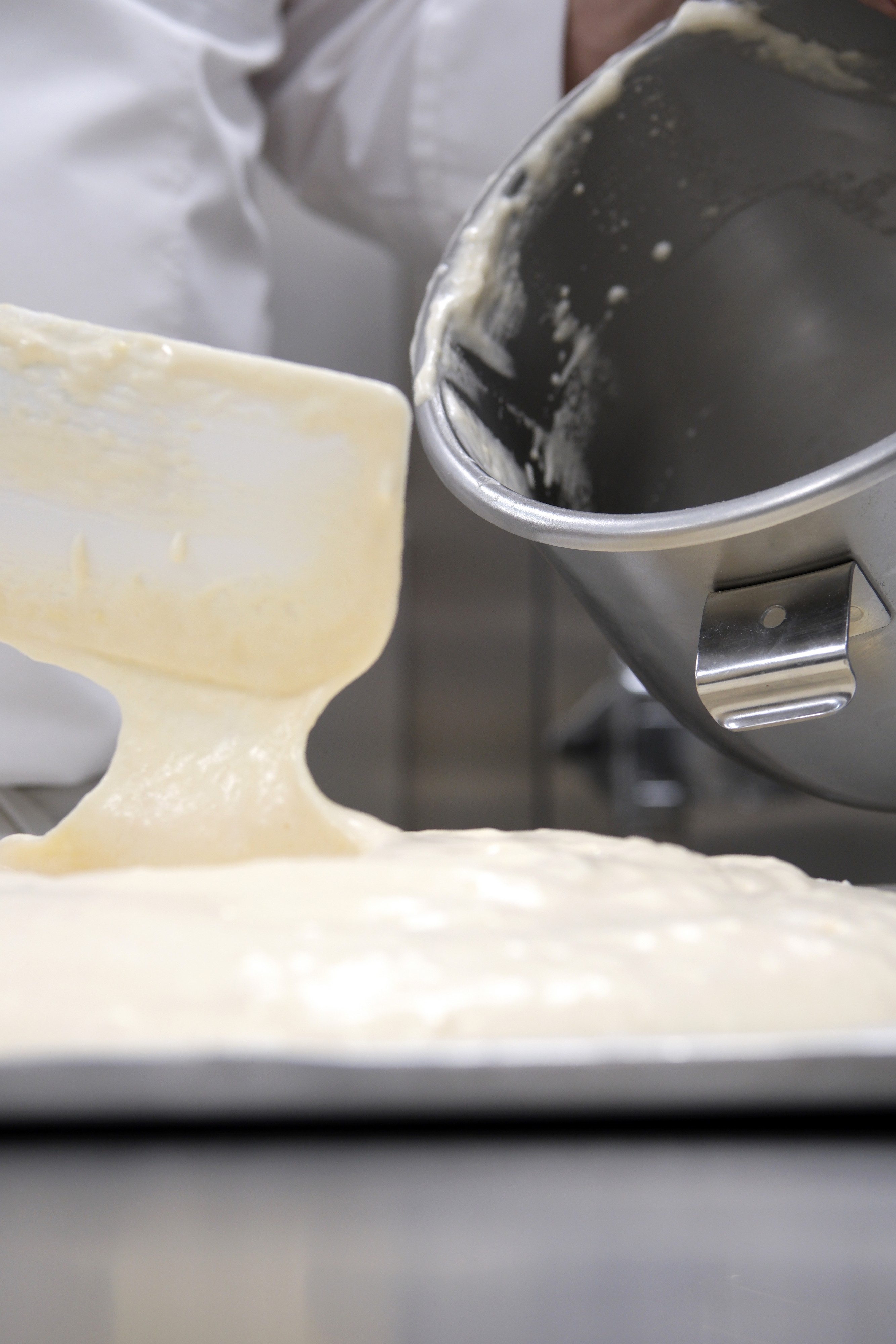 - Verser la pâte sur une plaque de cuisson munie d'un papier à cuisson